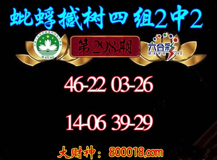 298期:🦠〖蚍蜉撼树〗🦠【四组2中2】🦠【46-22|03-26|14-06|39-29】开: 22-20-49-37-39-35+特23 错